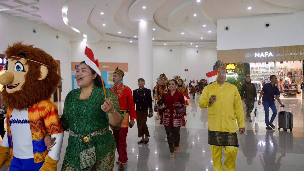 Bandara yang biasanya identik dengan hiruk-pikuk keberangkatan, hari itu menjelma menjadi ruang perayaan kemerdekaan, menyatukan budaya, kebahagiaan, dan nasionalisme dalam satu langkah bersama.