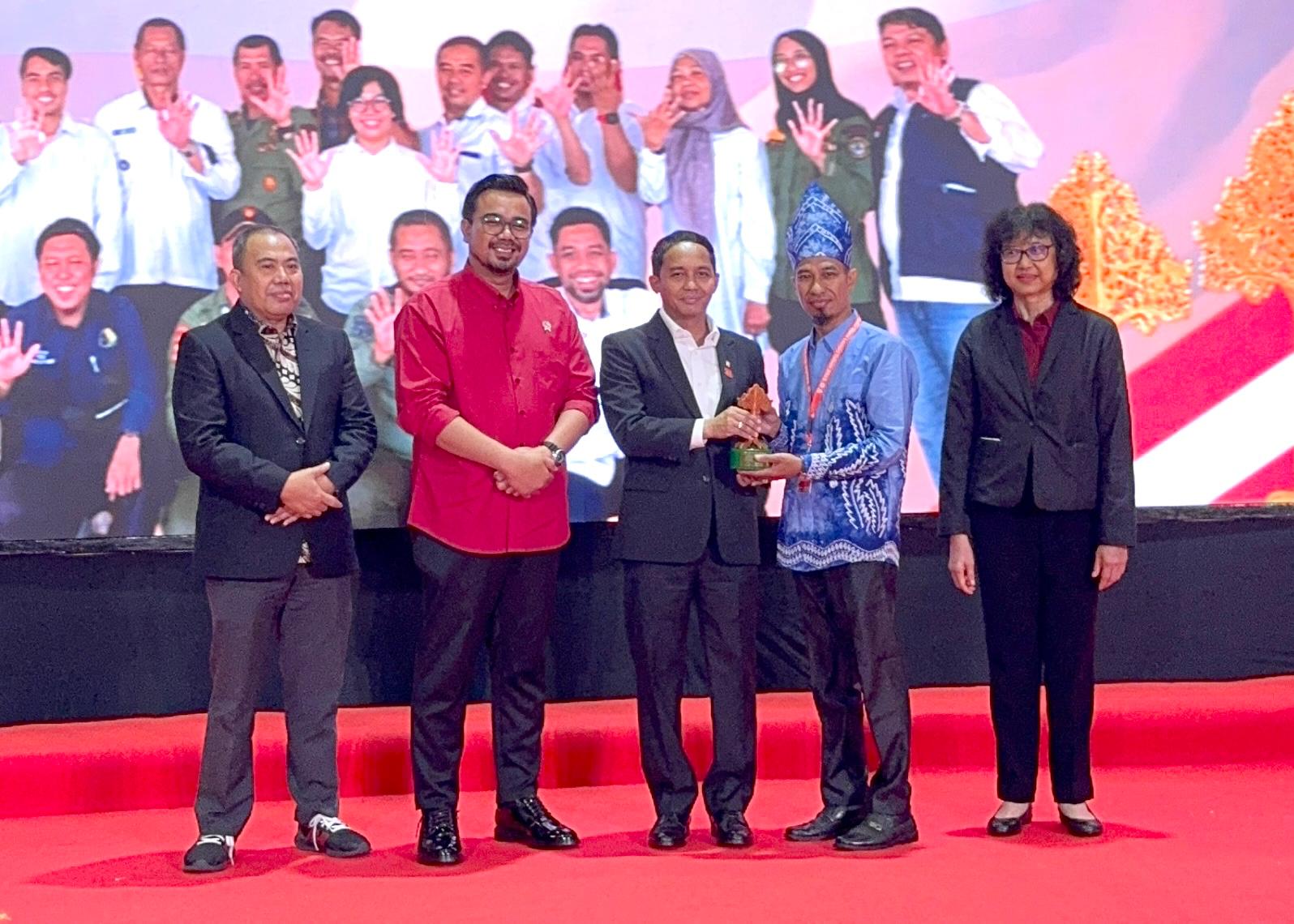 Bupati Sahrujani didampingi Kepala Desa Tambak Sari Panji Bina Yasud pun turut hadir menyaksikan penyerahan penghargaan diserahkan Menteri Kehutanan pada Ketua LPHD Tambak Sari Panji Muhammad Mehra